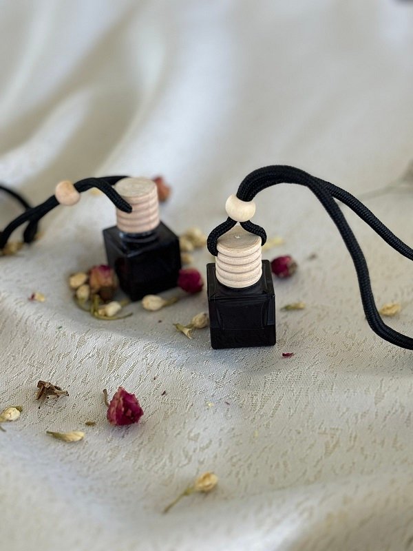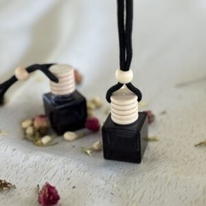 Κρεμαστό αρωματικό αυτοκινήτου σε κομψό γυάλινο μπουκαλάκι με ξύλινο καπάκι. Ιδανικό για αυτοκίνητο, ντουλάπα ή μικρούς χώρους.
