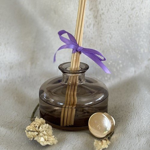 Ατμόσφαιρα απλότητας με το Violet Charm Diffuser. Το ιδιαίτερο μπουκάλι προσδίδει μια ρομαντική και κομψή διακόσμηση του χώρου σου. Τα φυσικά ξυλάκια απελευθερώνουν σταθερά το άρωμα, χαρίζοντας αίσθηση ζεστασιάς και αρμονίας σε κάθε δωμάτιο.